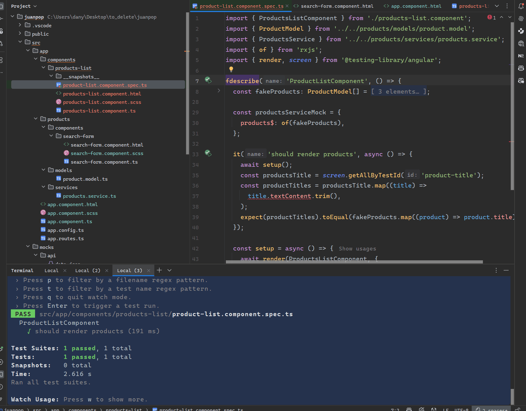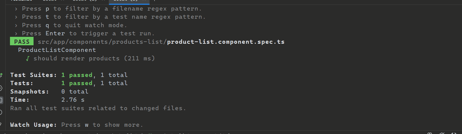 In my product.spec.ts test file it find the products was render,