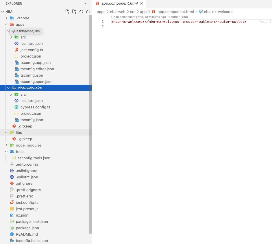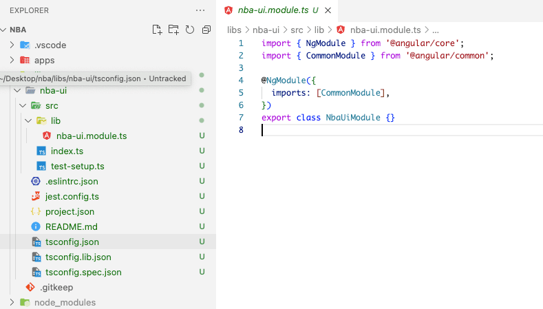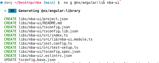 Navigate to the NBA directory and create the library by using nx g @nx/angular along with the lib parameter and the library name.