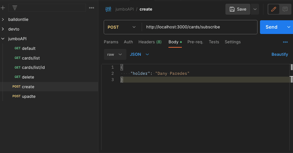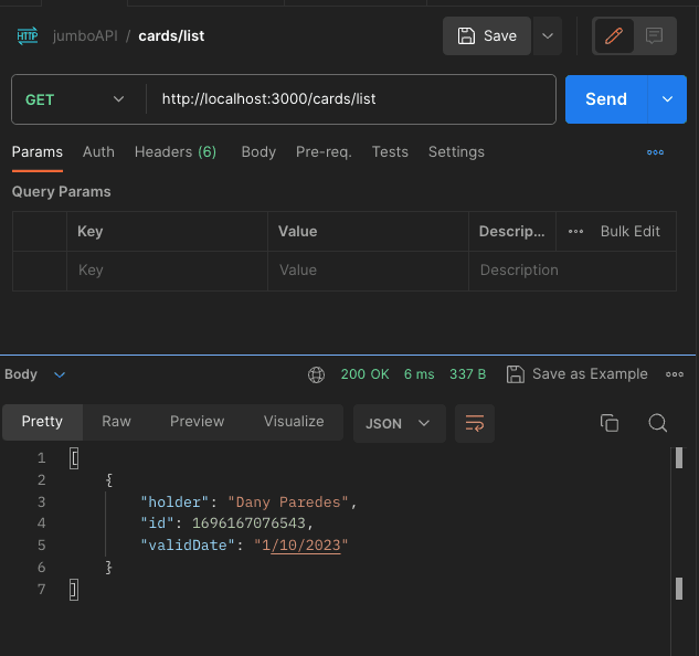 Clone the previous project, navigate to the jumbo_api which has the card's controller, and run the npm i command, and open with your favorite editor.