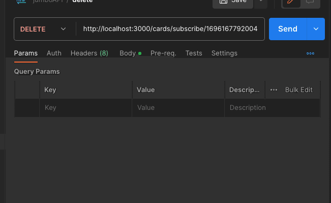 Finally, take the ID again and send a delete request to cards/subscribe/yourid endpoint.