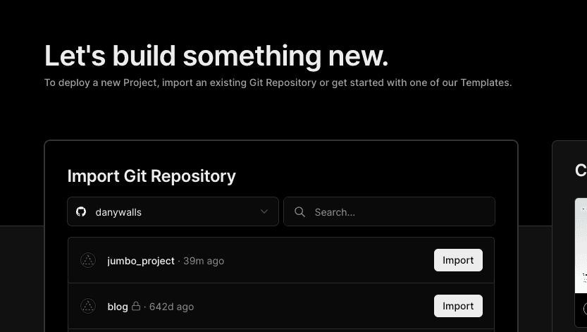 }Save and push your change to the repo, go to https://vercel.com/new/import and import your project.