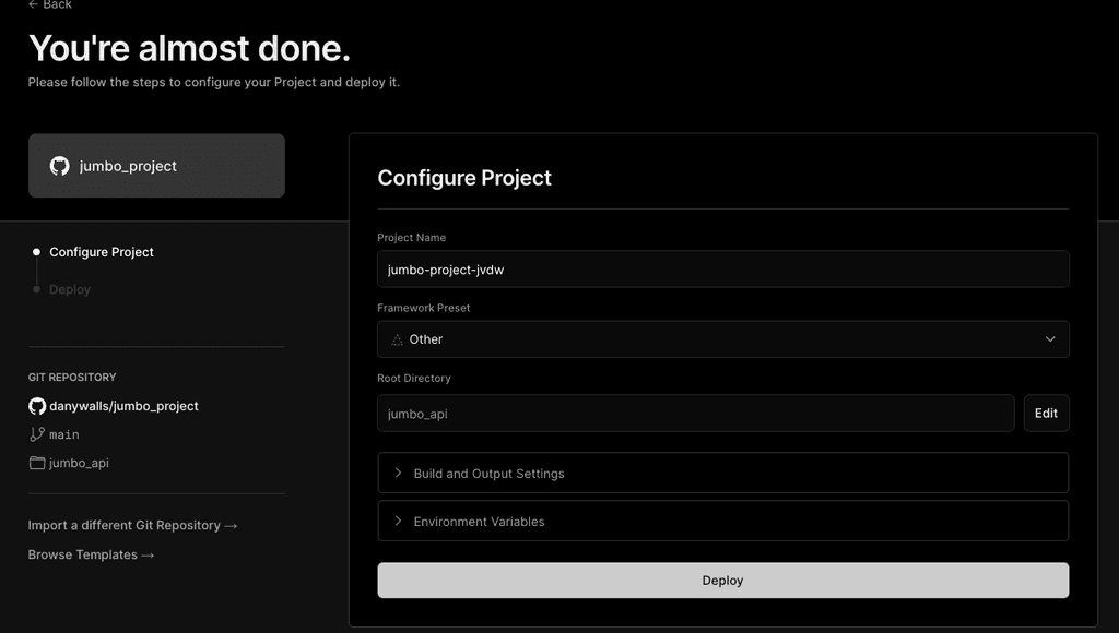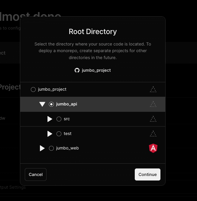 Because we have two projects in the repo jumbo, we must select jumbo_api: