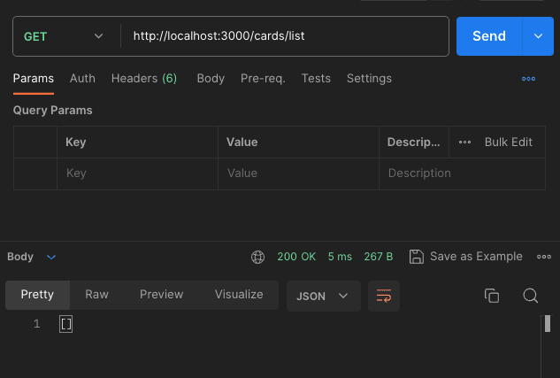 To update first we need to know the ID of the card, so use the list endpoint with a request: