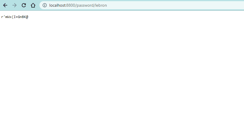Once the server is up and running, navigate with the browser to http://localhost:8800/password/lebron to generate a password for the account named lebron in the server's response.