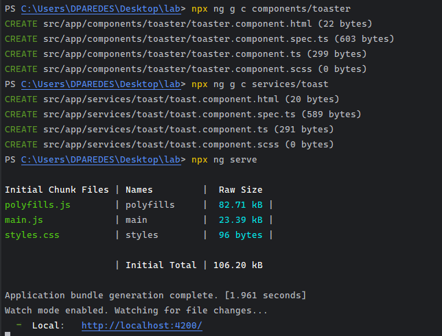 npx ng g s services/toasterTo run the application using npx, execute the following command: npx ng serve.