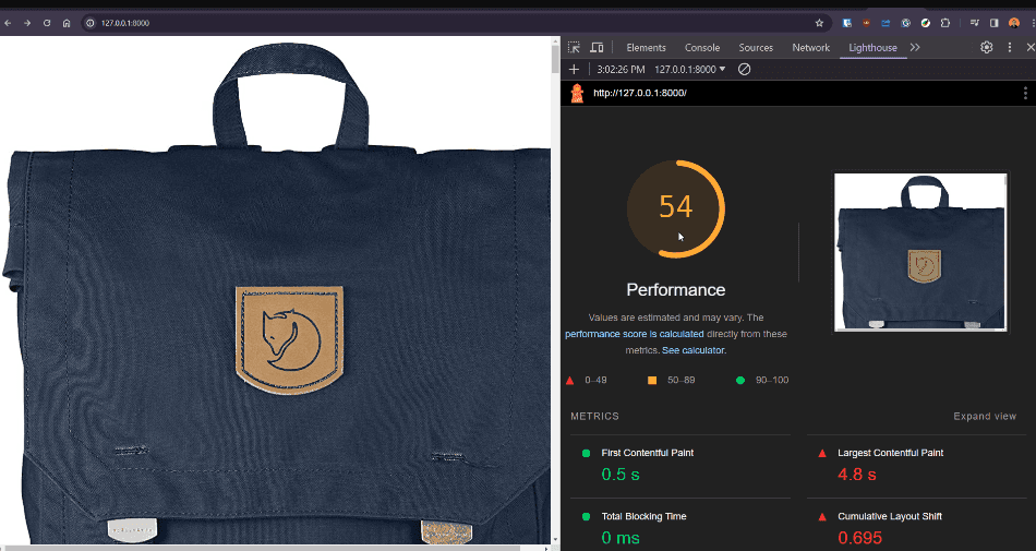 Navigate again to http://127.0.0.1 and explore the network requests and Lighthouse results.