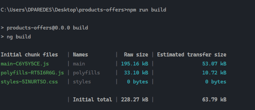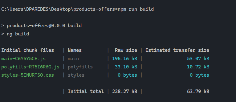 In your terminal, run the following command to create a new Angular project named products-offers:
